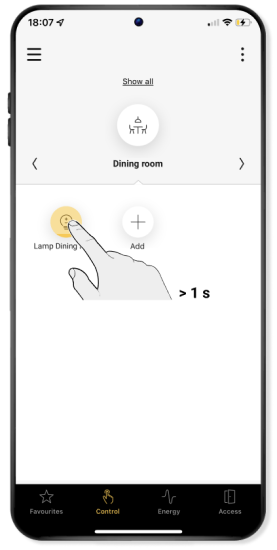 Example: You can dim the lamp above the dining table to 60% by sliding the sliding adjuster to the left.
