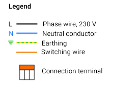 Warning: In reality, the switching can look different to what you see on the drawing. The wires leading to the lamp do not always go upwards. Also, the phase conductor and neutral conductor may be in a different colour. Therefore, use a multimeter to correctly identify the connection diagram.