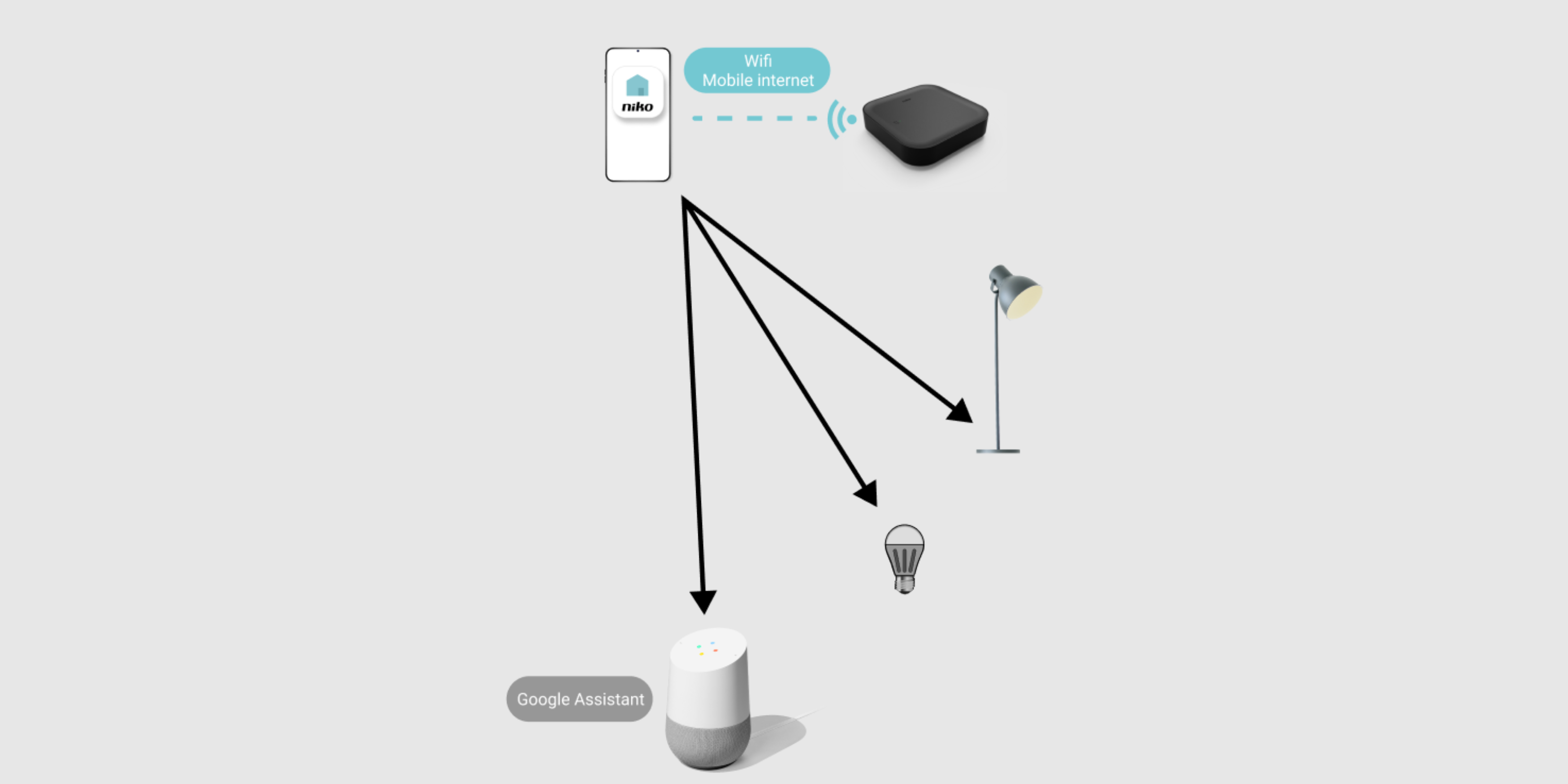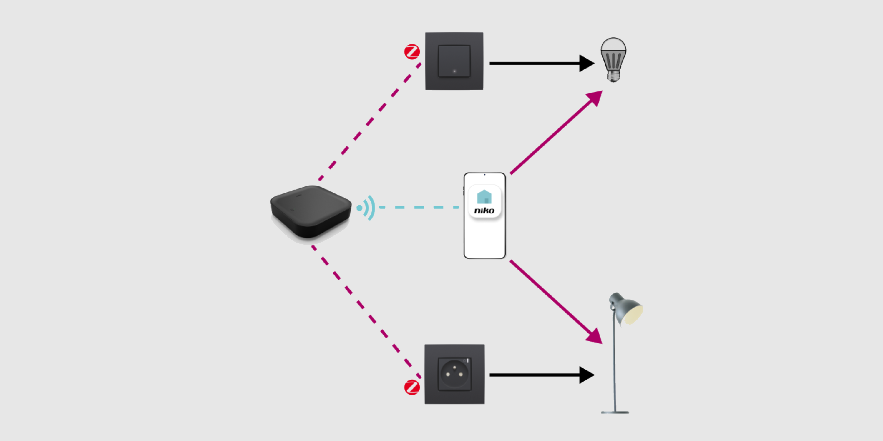 - You also need an internet network in your home. You can modify your switching without internet, but then you cannot register the wireless smart hub and you cannot programme the installation in the Niko Home app.