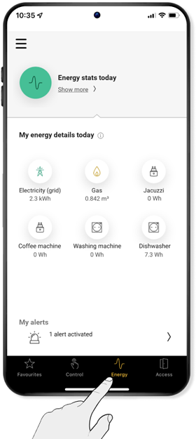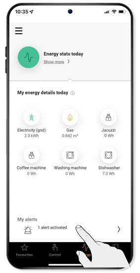 Click on My devices to consult the energy consumption per device. The device needs to be connected to a smart plug or connected switching socket outlet.