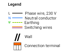 Warning: In reality, the switching can look different to what you see on the drawing. The wires leading to the lamp do not always go upwards. Also, the phase conductor and neutral conductor may be in a different colour. Therefore, use a multimeter to correctly identify the connection diagram.