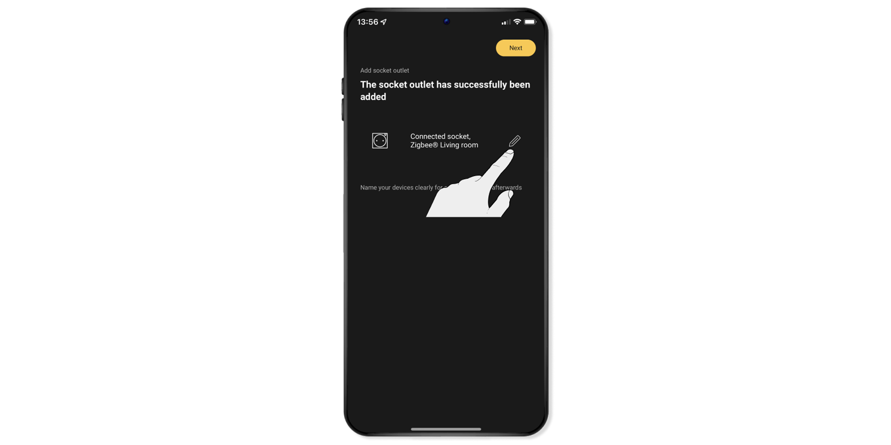 The socket outlets must be added one by one manually. This may seem like hard work, but then you know exactly which socket outlet you are adding and you can allocate an appropriate name in the app.