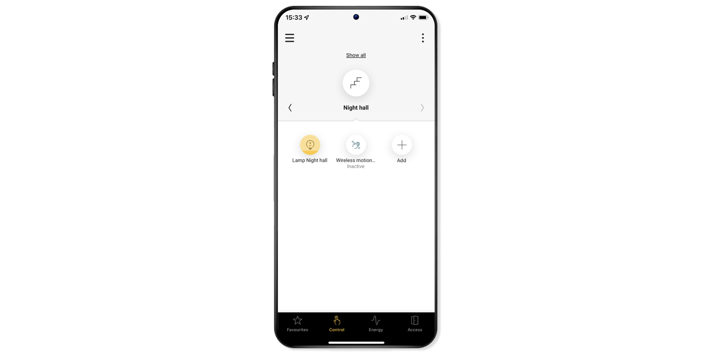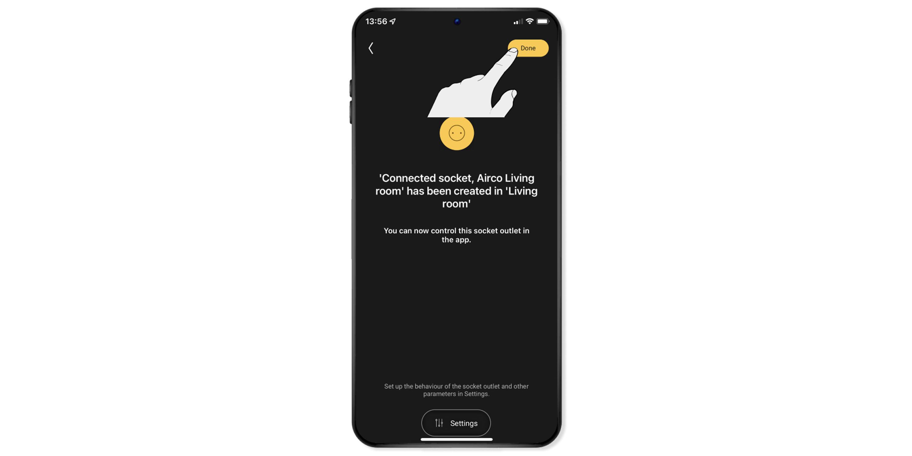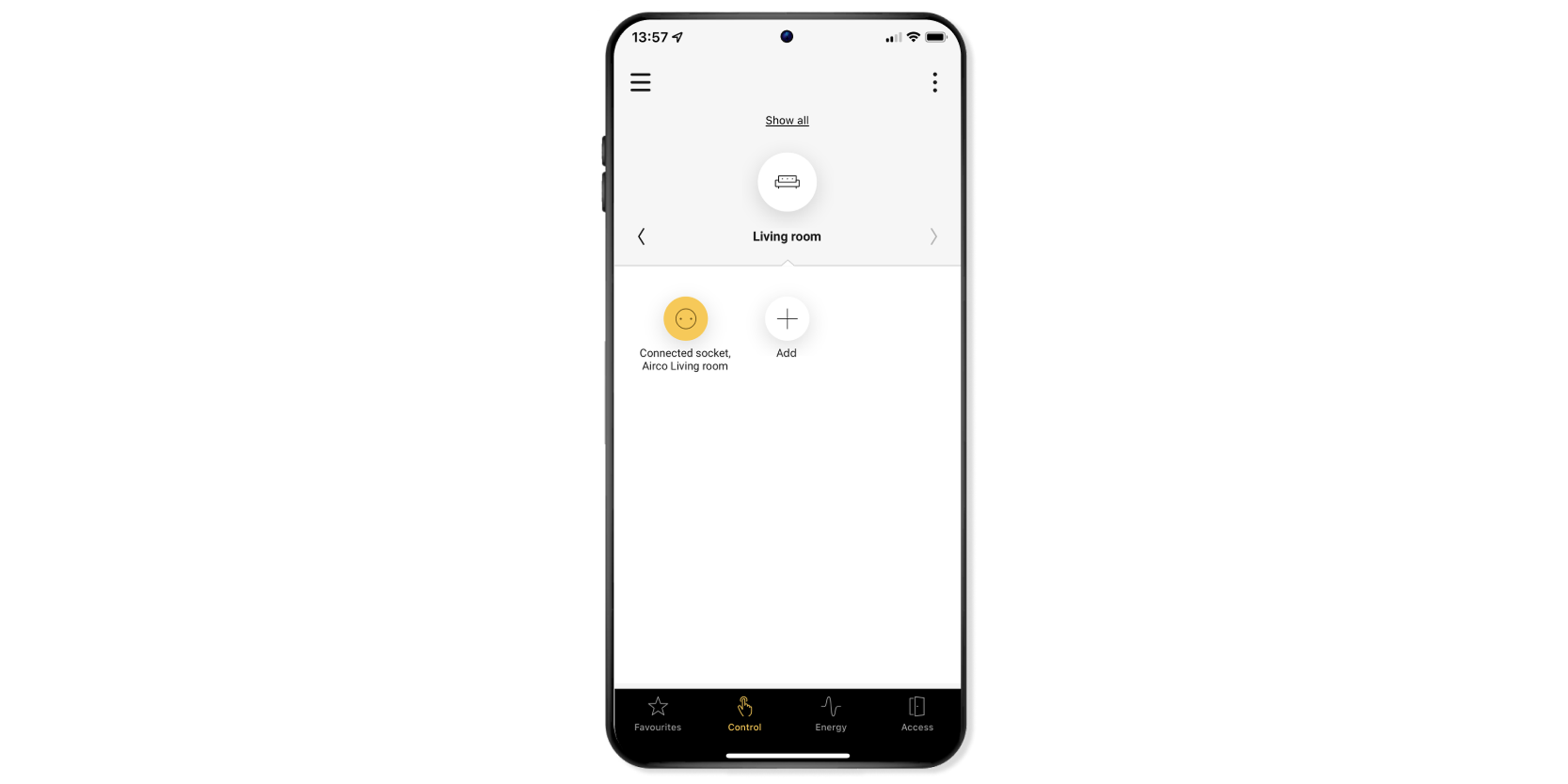 The socket outlet will now appear in the Control navigation tab. You can use the app to command the socket outlet by clicking on it in this screen.