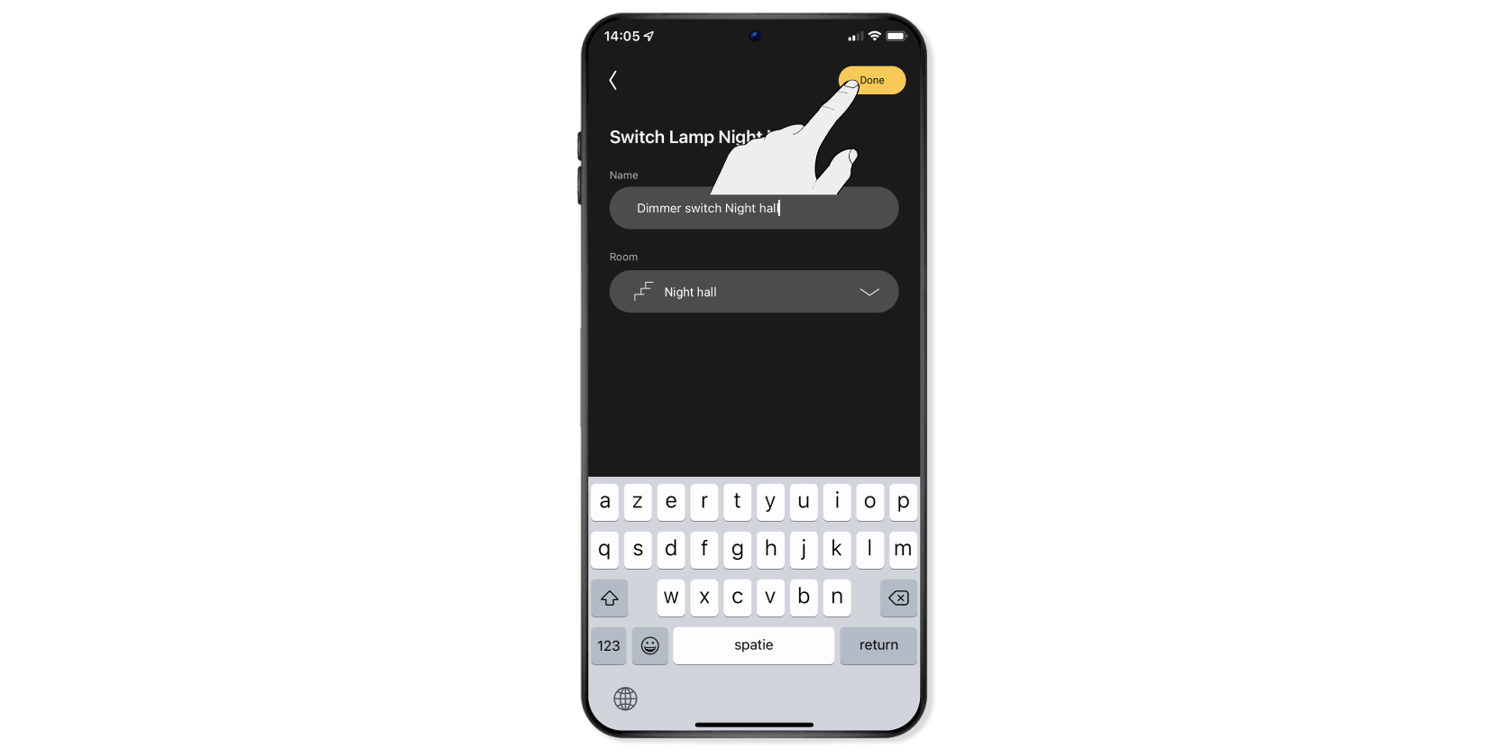 Confirm in which room the dimmer is located.