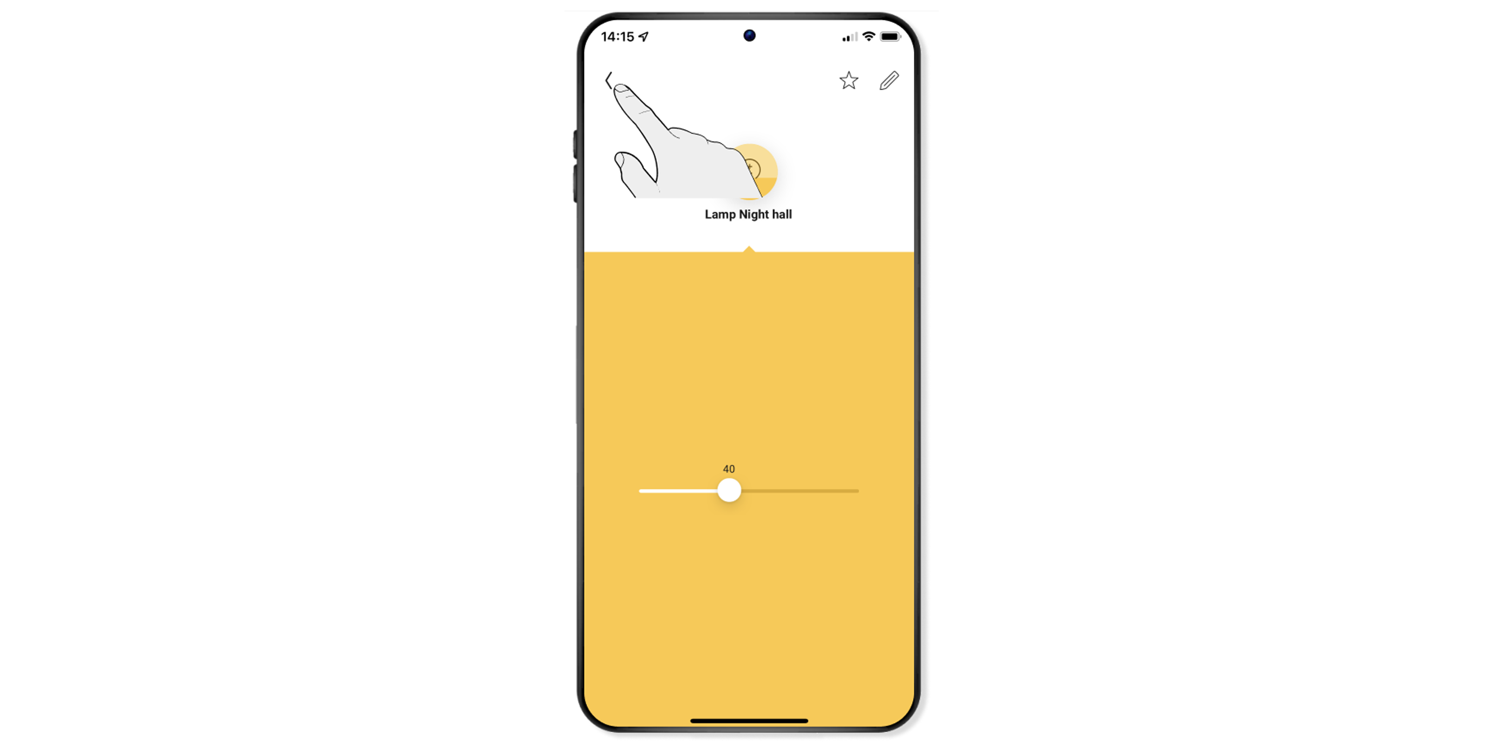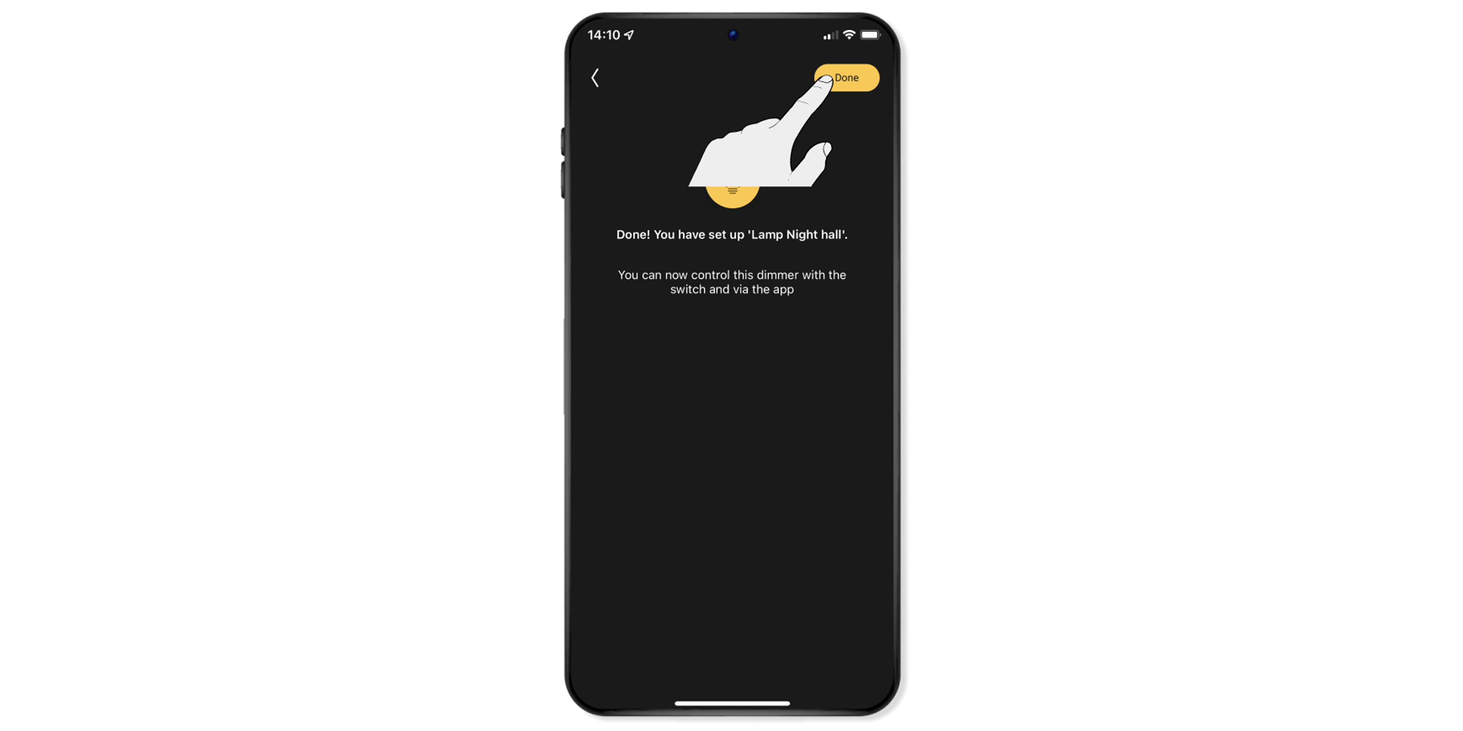 Hold and press the lamp in order to dim the light using the app. You can then set the dimming level using the sliding adjuster.