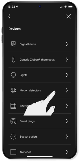 Select Motion detectors from the list of devices that you can add.