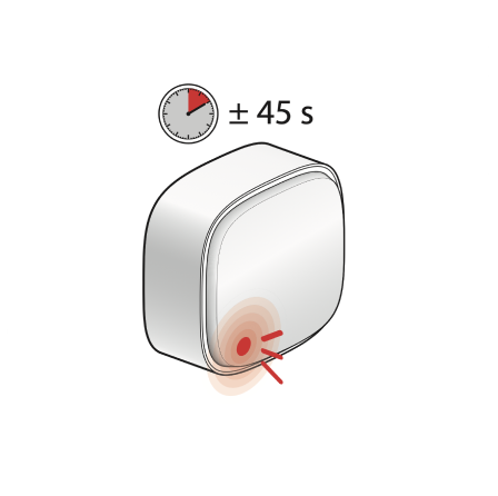 If the Niko Home app does not automatically add the motion detector, press and hold the small button next to the battery for a minimum of 3 seconds to send a signal to the app.