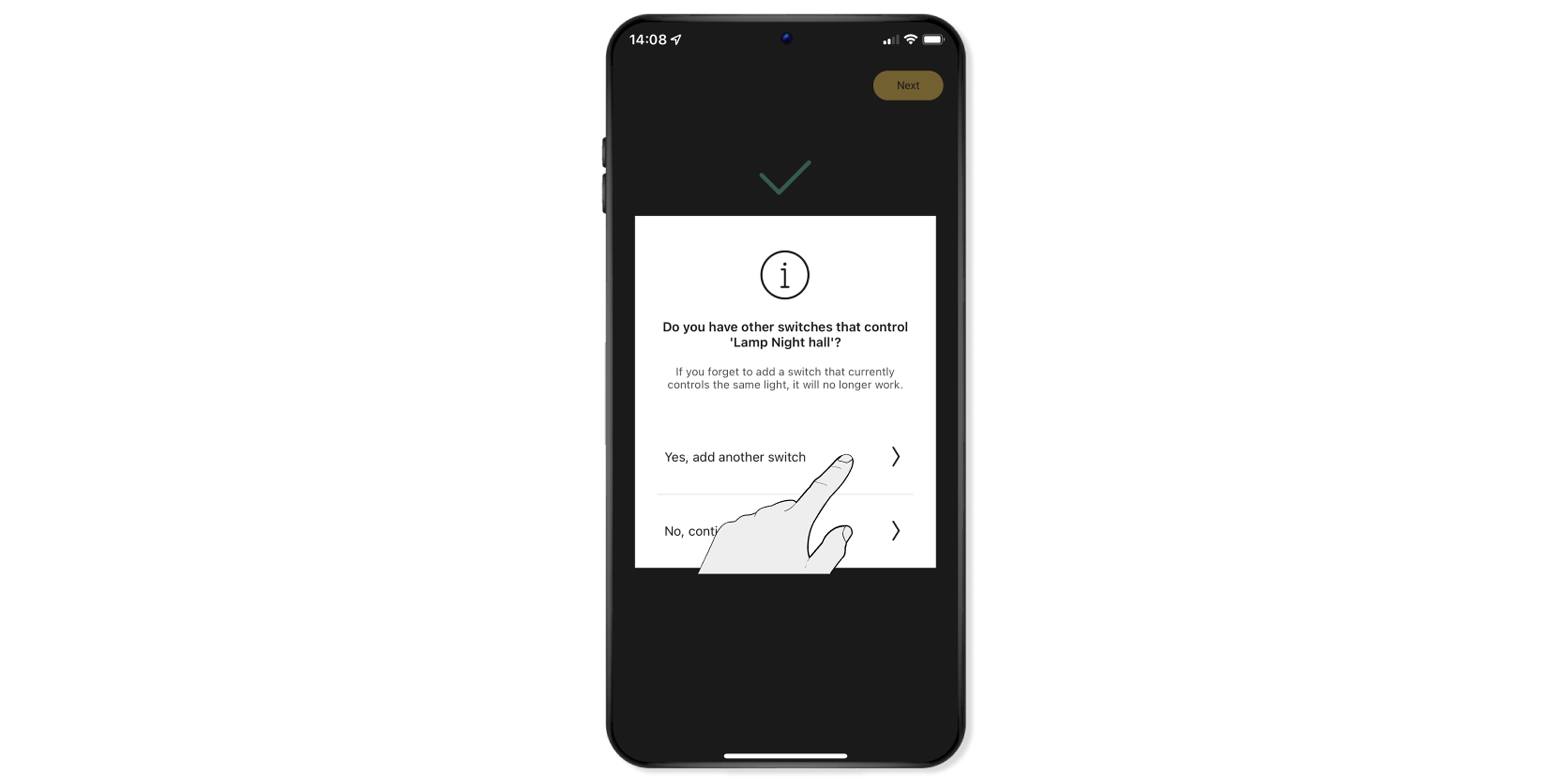Once you have added the last switch, click on No, continue with the set-up