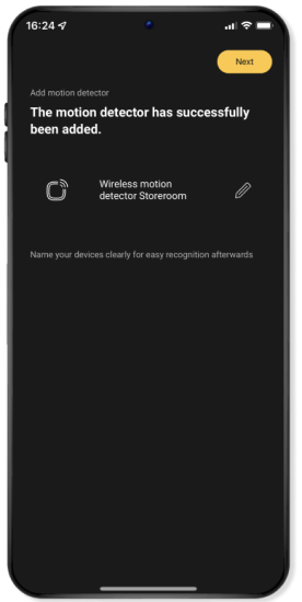 Tip: Give the motion detector a clear and appropriate name so that you can find it easily again later. To do so, click on the Pencil on the right.