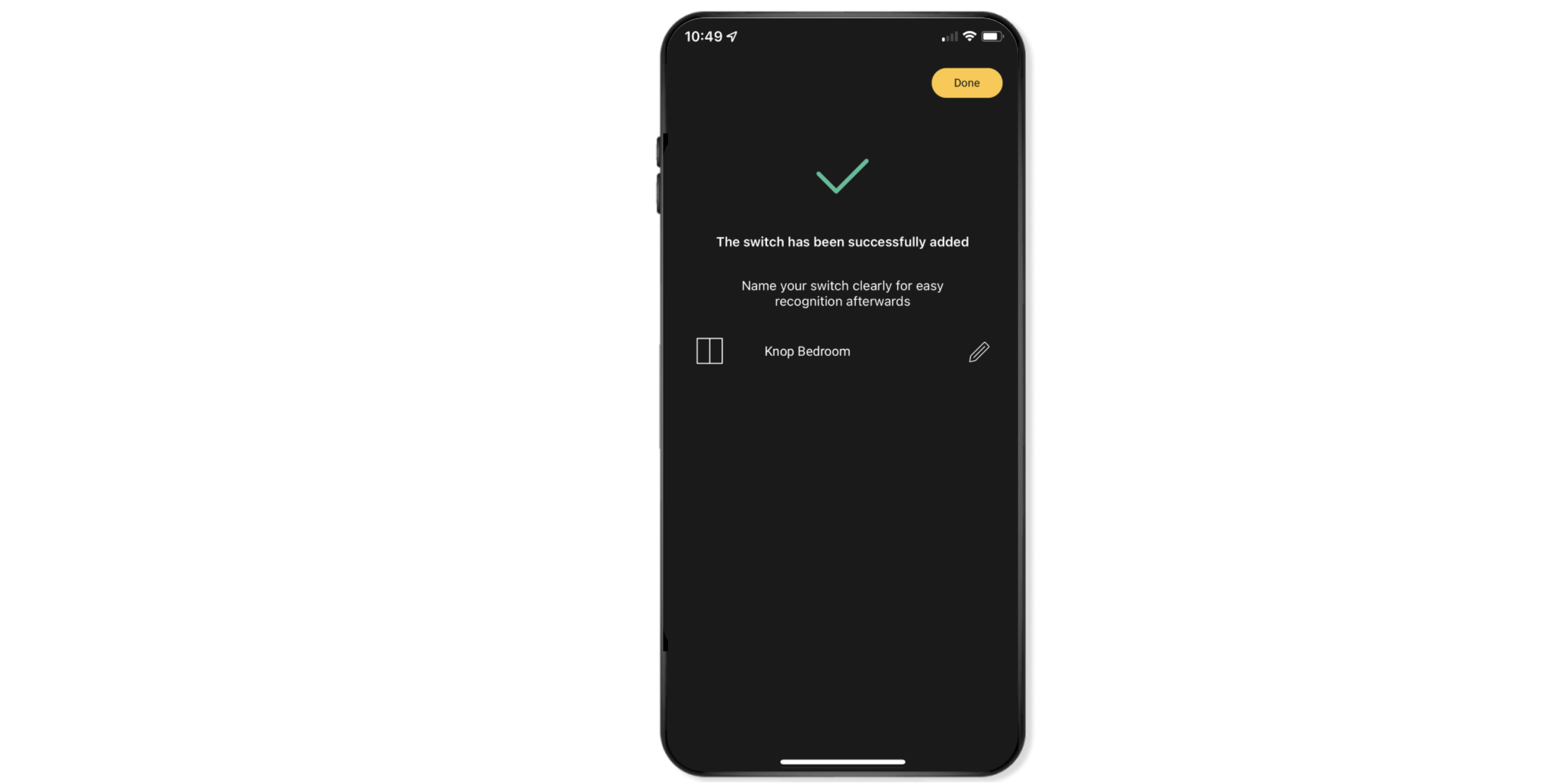 Give the switch a clear and appropriate name so that you can find it easily again later. To do so, click on the Pencil on the right. Next, click on Ready.