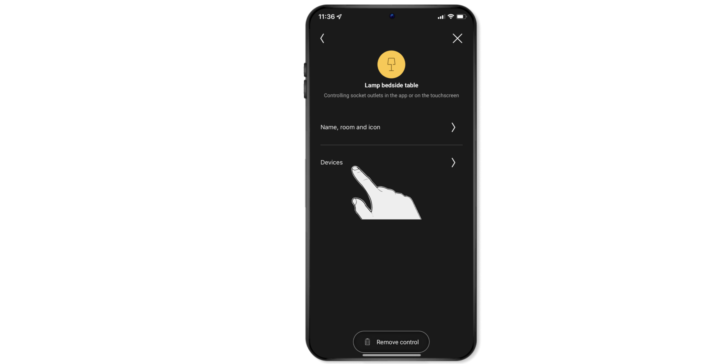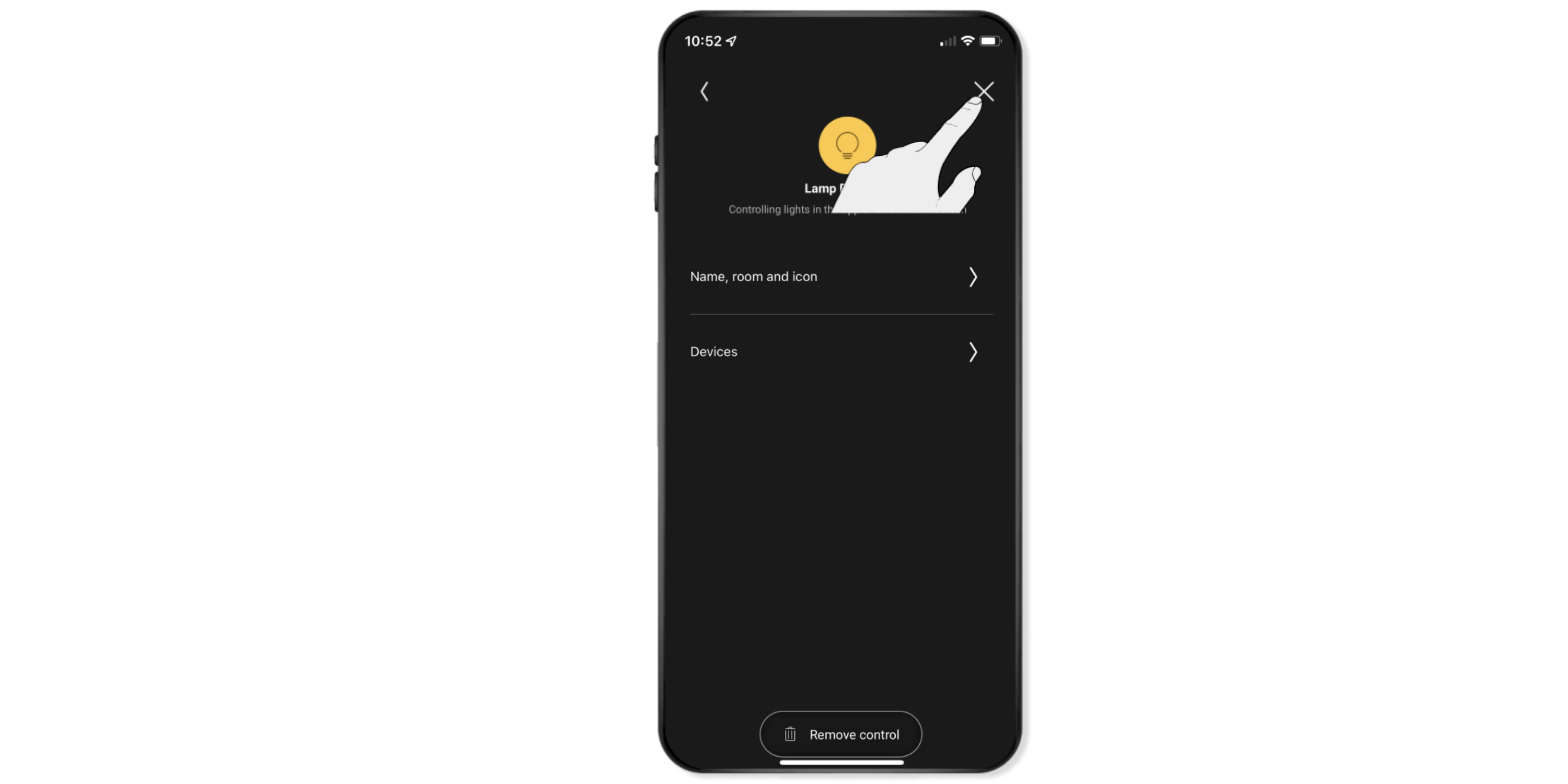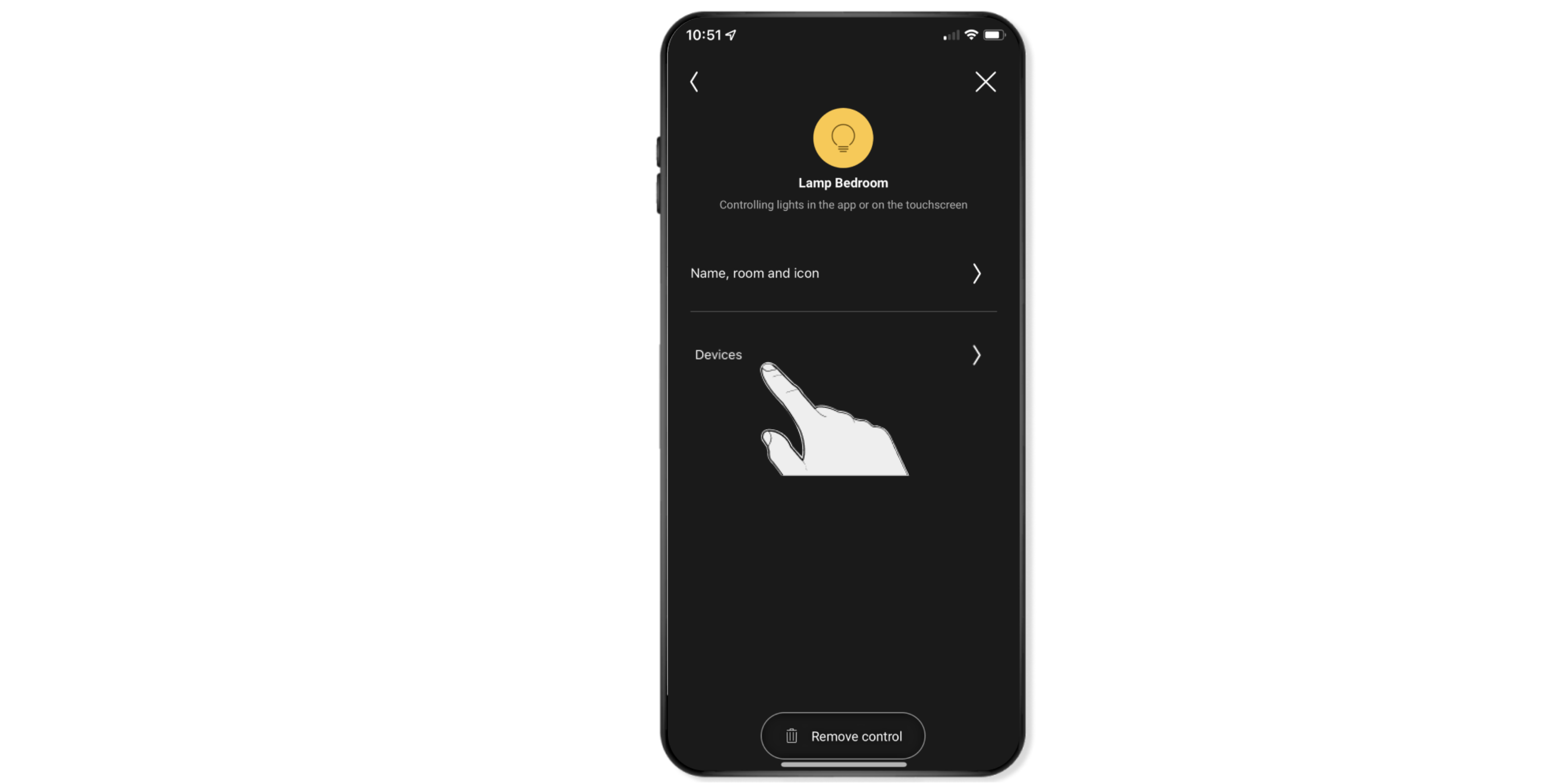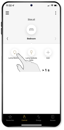 Select the device in that room (for example, the reading lamp) by pressing and holding.
