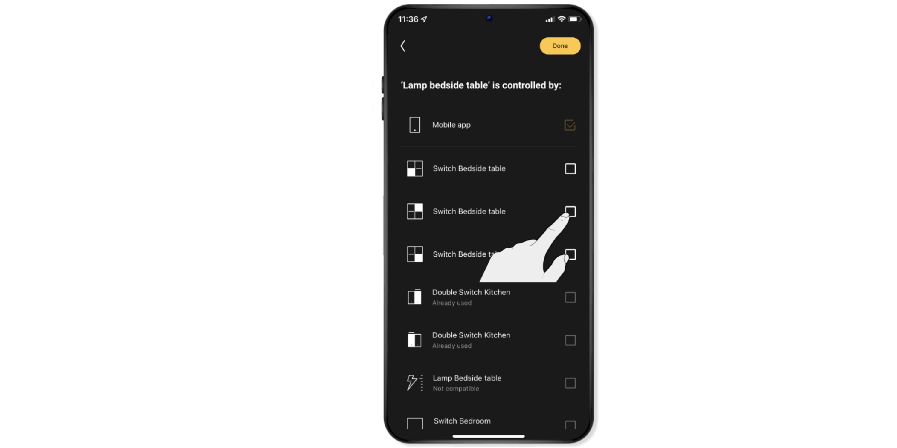 Confirm in which room the switch is located.