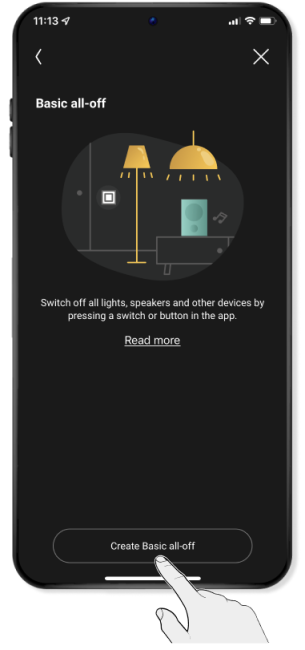 You can program a routine like a 'basic all-off' routine, allowing you to switch off all lighting with one press of a control button (or using the app) whenever you leave the home, for example.
