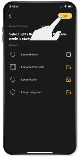 If necessary, select any other lamps that should still be left on once you have activated the alert mode.