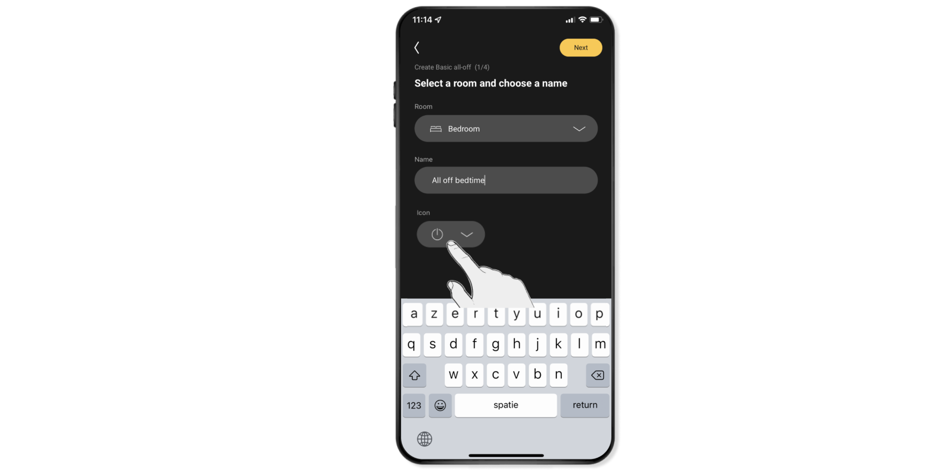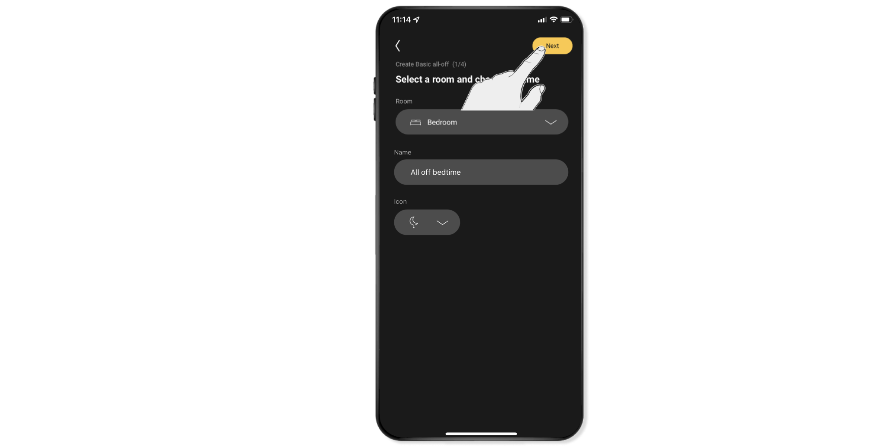 Example: Besides a routine for leaving the house, you can also create a routine to switch off all lighting (except for your reading light) when you go to bed.
