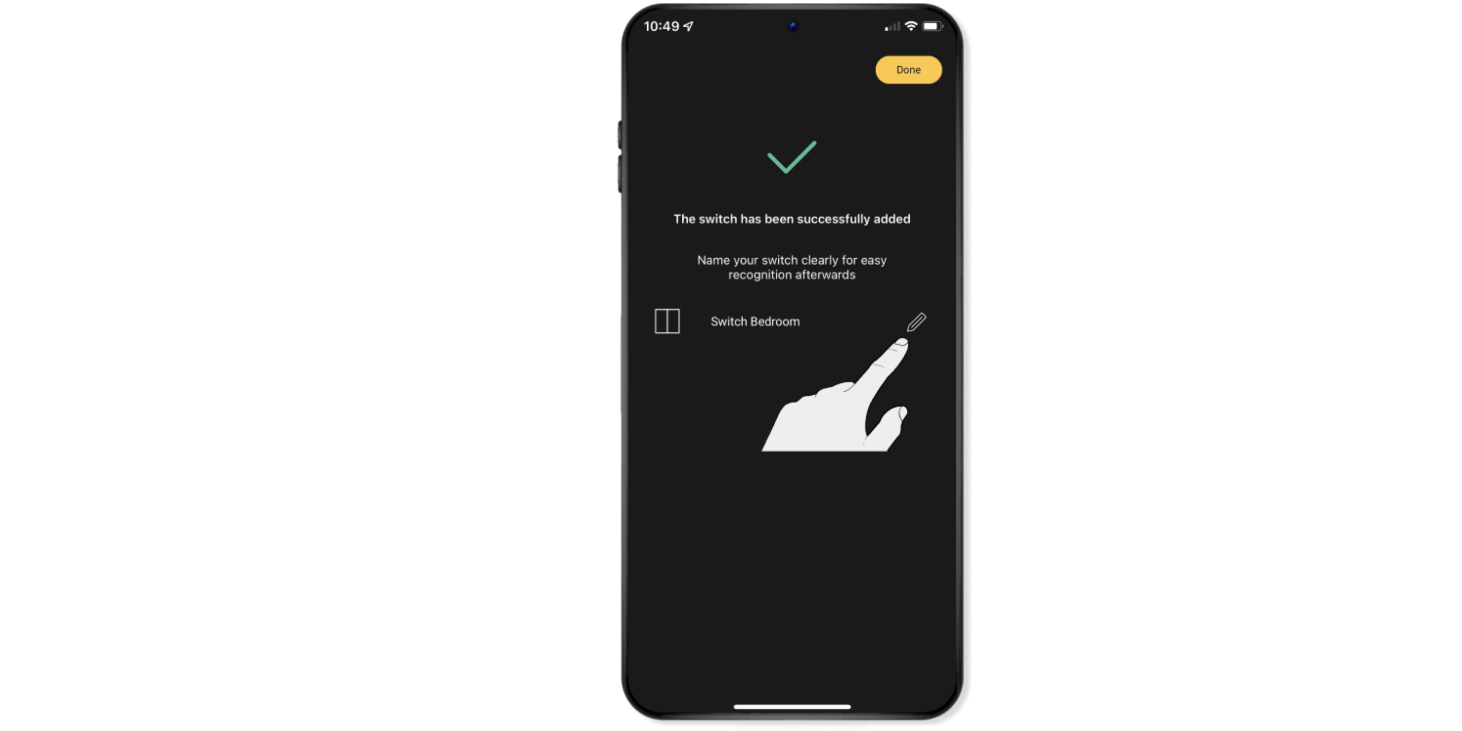 Give the switch a clear and appropriate name so that you can find it easily again later. To do so, click on the Pencil on the right. Click on Ready.