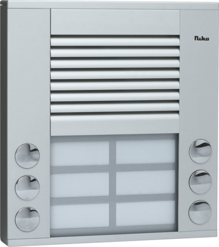 Ce poste en saillie compact en aluminium possède une partie saillante d’à peine 20 mm. Le poste extérieur est muni d’un porte-étiquette en plexiglas de 5 mm d’épaisseur résistant au vandalisme. Les contacts dorés de bouton-poussoir sont durables et ne demandent pratiquement pas d'entretien. Avec sa double rangée de boutons de sonnerie, ce poste en saillie est conçu par excellence pour de grands complexes résidentiels. Ce poste extérieur se caractérise par 6 sonnettes en deux rangées.