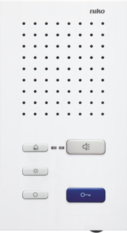 Ce poste intérieur audio compact est muni en standard des fonctions suivantes : conversation avec un visiteur, distinction de tonalité entre un appel à la porte de l’appartement, un appel à la porte d’entrée et un appel interne, commutation de l’éclairage, ouvre-porte, réglage du volume, désactivation de la tonalité, indication 'occupé' et 'appel' au moyen de LED. La commande se fait au moyen de 5 touches de fonction et d’un bouton de contrôle du volume. Les fonctionnalités suivantes peuvent être attribuées librement aux touches : envoi d’une fonction de commande pour le relais 10-831, appel parallèle, appel interne, réglage d’une fonction 'sonner et entrer' ou activation d’une fonction de transfert. La communication avec le visiteur se fait en mode mains libres.