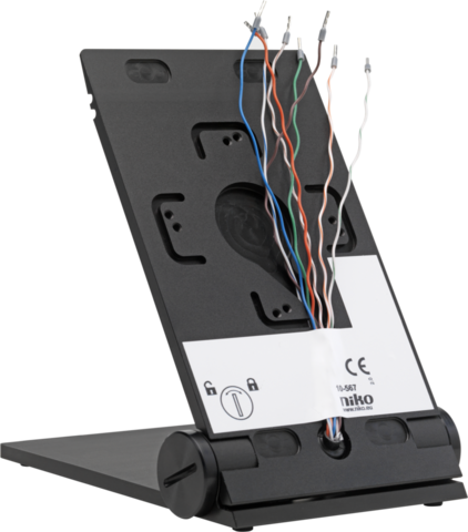 Ce support de table convient pour le poste intérieur vidéo 10-570. Le support de table est muni d’un câble réseau de 3 m permettant une connexion aisée avec une prise RJ45 Niko.