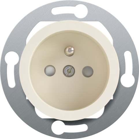 Prise de courant de couleur avec broche de terre et obturateurs de protection pour boîtes de sol, profondeur d’encastrement de 28,5 mm, bornes à vis, couleur cream.