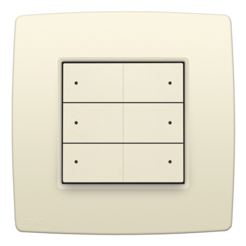 Bouton-poussoir sextuple avec LED et capteurs de confort pour Niko Home Control, couleur cream.