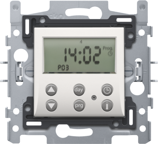 Appareil complet (mécanisme et set de finition) pour thermostat électronique. Ce thermostat possède un programme journalier et un programme hebdomadaire. Il peut être commandé manuellement. Il est fourni avec un acteur Nikobus. Couleur de finition: white.