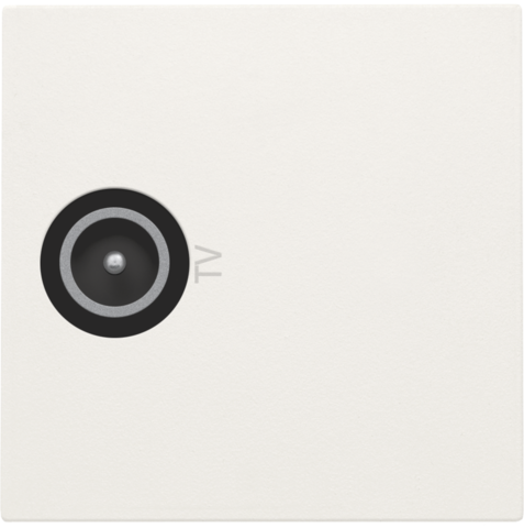 Set de finition pour prise coaxiale mâle simple. Le mot ‘TV’ est gravé à côté de l’entrée. Cet enjoliveur peut également être encastré dans des goulottes d’installation ou dans de l’appareillage électrique étanche aux projections d’eau.