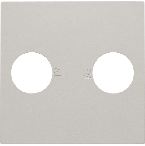 Enjoliveur avec 2 connexions coaxiales simples. La première entrée est destinée à une connexion EDU TV. La deuxième est destinée à une connexion FM. Les mots ‘TV’ et ‘FM’ sont gravés à côté des entrées. Couleur de finition: light grey.