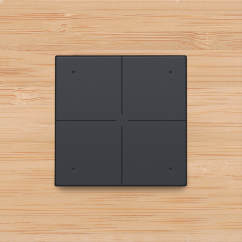 Le bouton-poussoir quadruple peut être configuré pour commander plusieurs actions et routines dans une installation Niko Home Control II avec câblage bus. Il est doté de LED programmables qui fournissent un feed-back sur l'action. De plus, le bouton-poussoir peut faire office de lumière d’orientation lorsque les LED sont allumées.