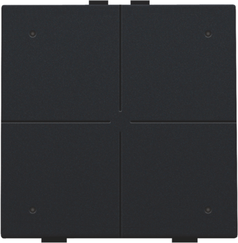Ce bouton-poussoir vous permet d’exécuter quatre commandes. Il se fixe sur la platine murale au moyen d’un mécanisme d’encliquetage. Une LED indique si la lumière est allumée ou éteinte. Mécanisme avec touche. Couleur de finition: black coated.