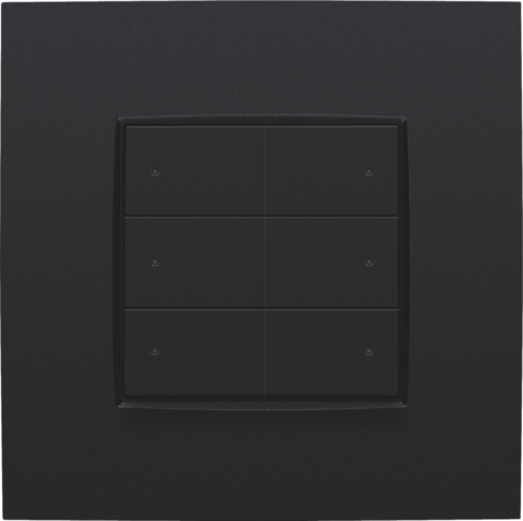 Bouton-poussoir sextuple avec LED et capteurs de confort pour Niko Home Control, couleur black coated.
