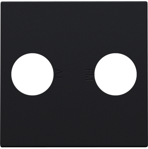 Enjoliveur avec 2 connexions coaxiales simples. La première entrée est destinée à une connexion EDU TV. La deuxième est destinée à une connexion FM. Les mots ‘TV’ et ‘FM’ sont gravés à côté des entrées. Couleur de finition: black coated.
