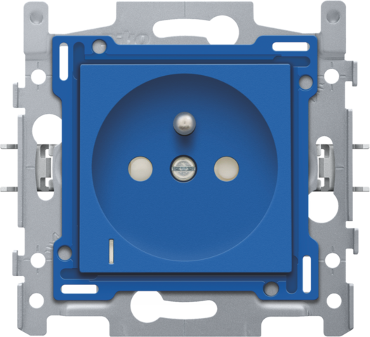 Prise de courant avec indication de tension, broche de terre et obturateurs de protection. Cette prise possède une profondeur d’encastrement de 28,5 mm et est munie de bornes à vis et d’une fixation par griffes. Set de finition compris. Une plaque de recouvrement d’une couleur au choix doit être commandée séparément. Couleur de finition: blue.