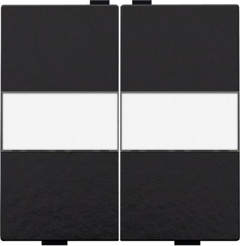Une double touche avec un espace pour ajouter un texte pour un interrupteur sans fil ou un bouton-poussoir avec quatre boutons de commande. Couleur de finition: piano black coated.