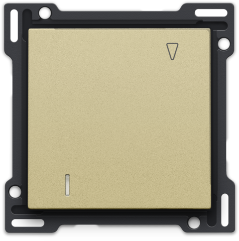 Interrupteur à encastrer assemblé (socle et set de finition). Le socle est muni d’une fixation par griffes. Cet interrupteur est presque exclusivement utilisé dans des chambres d'hôtel. Vous insérez la carte d'hôtel dans la fente en haut de l'interrupteur et le voyant vous indique alors que vous pouvez utiliser les lumières dans votre chambre. Couleur de finition: gold coated.