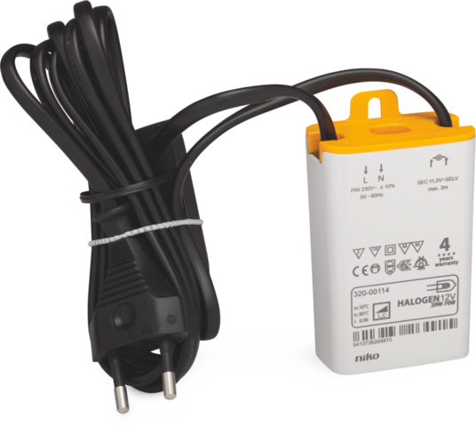 Ce transformateur électronique variable universel possède une puissance de 70 W. Il convient pour le raccordement de charges basse tension (12 V). Du côté primaire, le transformateur est pourvu d’une fiche euro que vous pouvez raccorder directement à une prise de courant. Du côté secondaire, le transformateur est pourvu d’un bloc distributeur de type Q qui garantit une distribution multiple rapide. Les cordons complémentaires peuvent être commandés séparément. Les fils sont fixés à l'aide de résine. Le transformateur est très compact et se prête de ce fait particulièrement bien à une installation dans de petits espaces. Ce transformateur peut également être encastré dans des meubles. Il est pourvu d’un système de protection intégré contre les courts-circuits, les surcharges et les surchauffes. Le transformateur possède un degré de protection IP20.