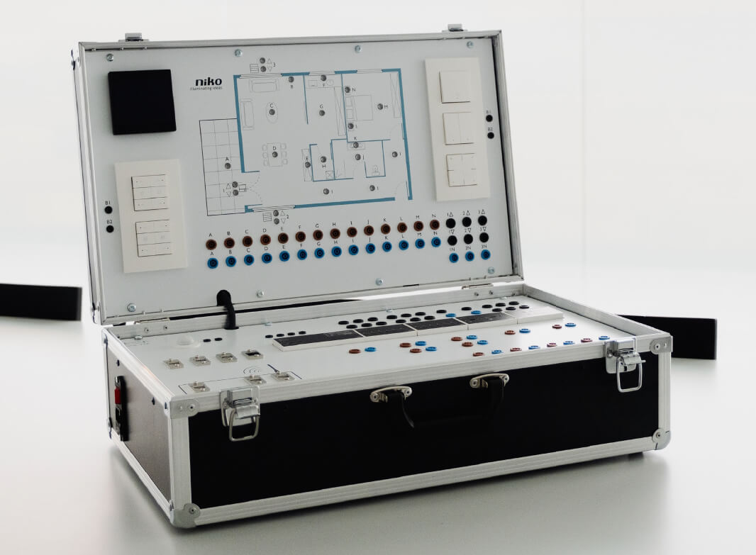Vous souhaitez acheter le coffret ou vous recherchez de plus amples informations ? Contactez Niko Technical Training à l'adresse training@niko.eu ou par téléphone au +32 3 778 92 43.