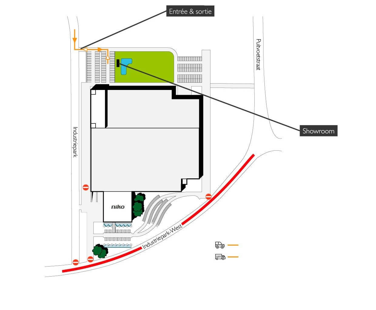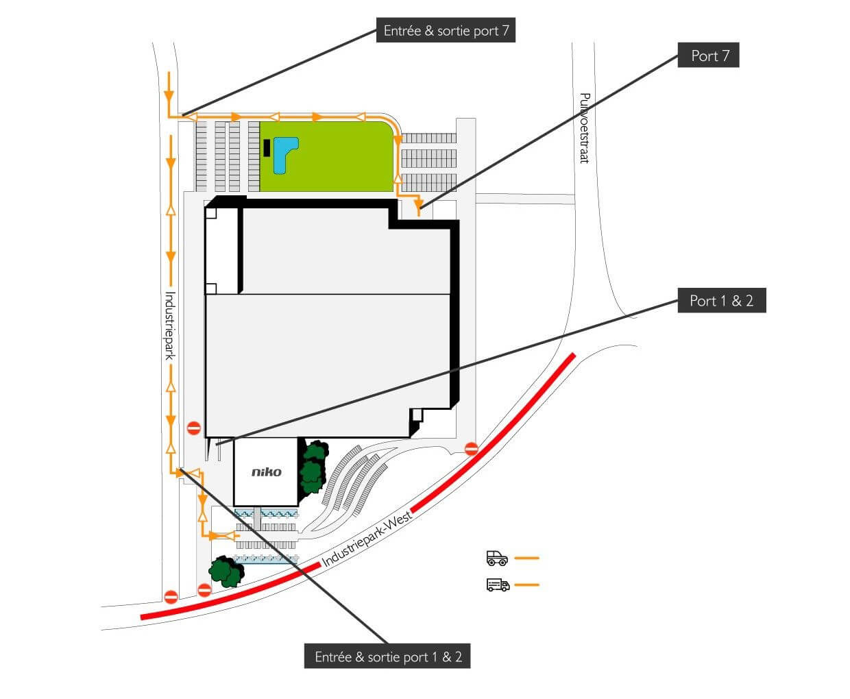 En raison de travaux de voirie dans les rues autour du siège de Niko dans l'Industriepark West à Sint-Niklaas, l'entrée et la sortie principales du bâtiment (Industriepark-West 40) sont temporairement inaccessibles à partir du 19 juin.