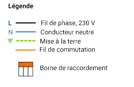 Attention : la commutation peut en réalité différer du schéma. Les fils vers le moteur ne partent pas toujours vers le haut. Le conducteur de phase et le conducteur neutre peuvent aussi avoir une autre couleur. Utilisez dès lors un multimètre pour visualiser correctement le schéma de raccordement.