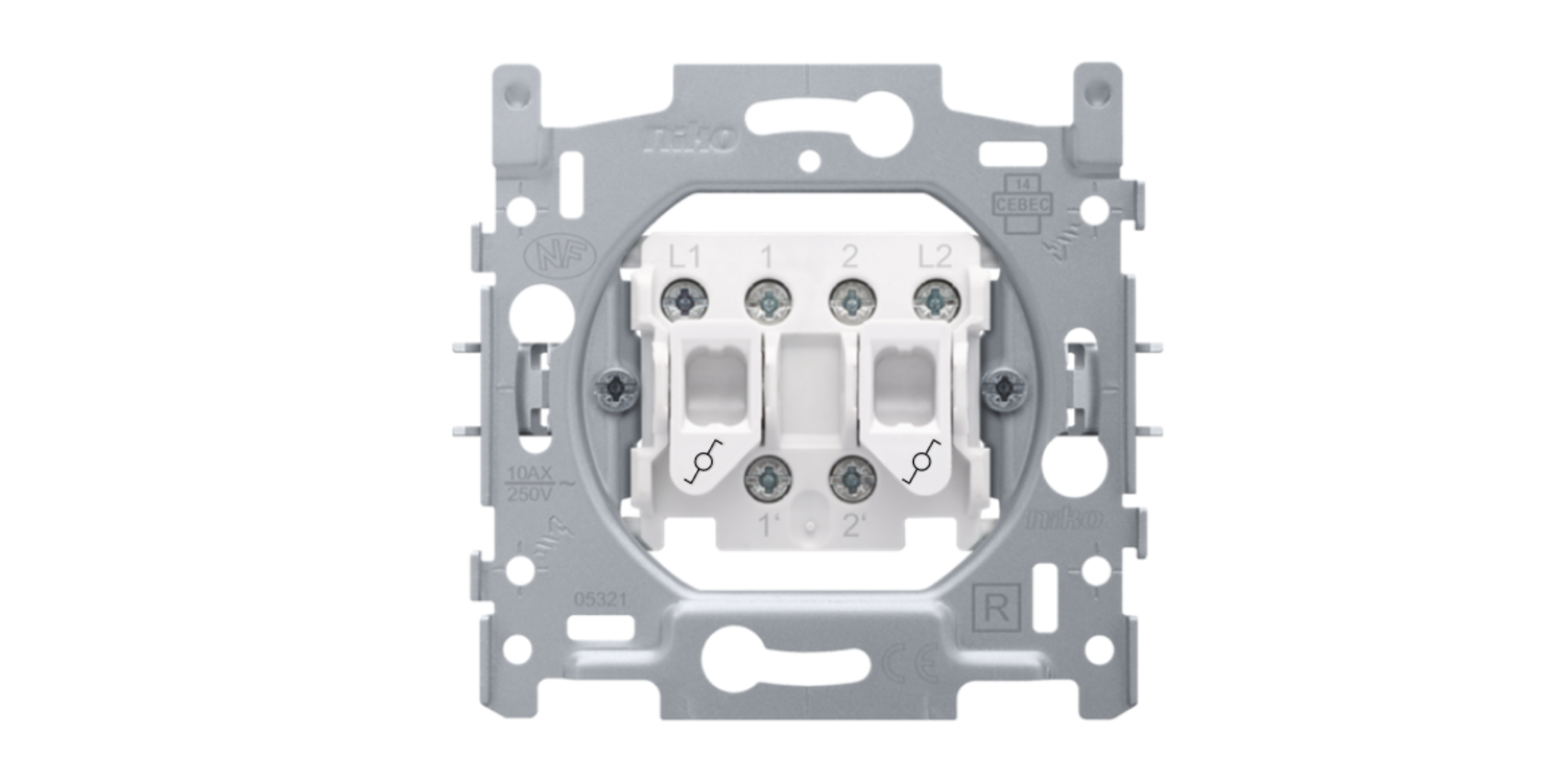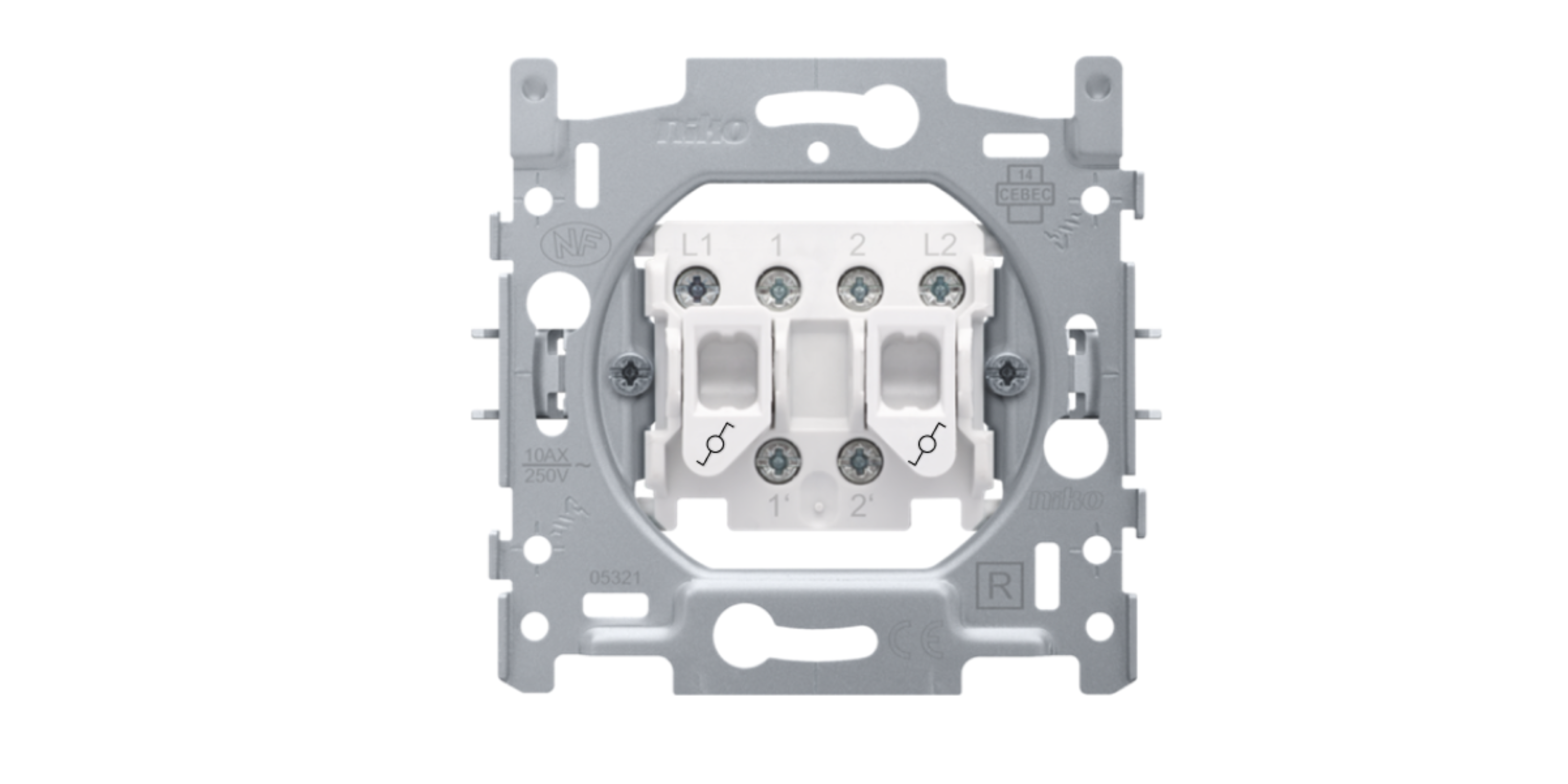 Remarque : vous trouverez ici un aperçu des commutations les plus fréquentes avec les interrupteurs actuels de Niko (dans l'assortiment depuis 2006). Ces exemples peuvent aussi vous aider à remplacer des interrupteurs plus anciens ou des modèles d'autres marques. Le cas échéant, le montage sera différent et les bornes de raccordement ne seront pas au même endroit.