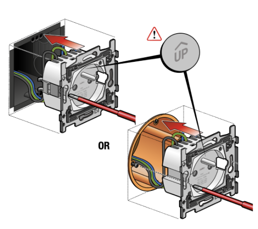 Fixez la prise de courant dans le mur. Pour une fixation dans une cloison creuse, vous devez écarter les griffes et fixer la prise de courant dans la bonne position à l'aide de vis.