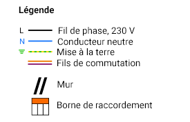 Attention : la commutation peut en réalité différer du schéma. Les fils vers la lampe ne partent pas toujours vers le haut. Le conducteur de phase et le conducteur neutre peuvent aussi avoir une autre couleur. Utilisez dès lors un multimètre pour visualiser correctement le schéma de raccordement.