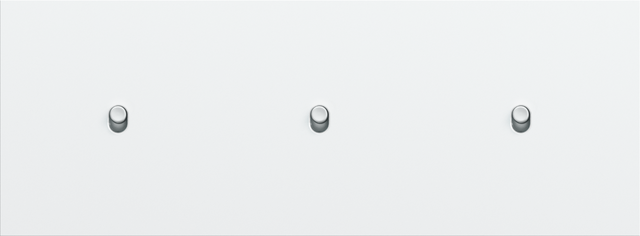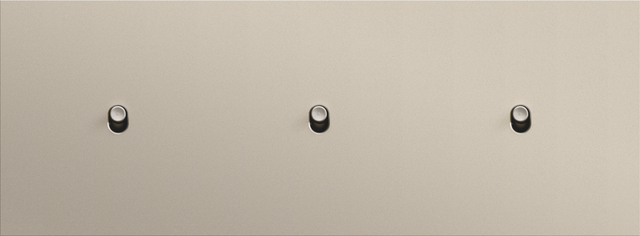 La plaque de recouvrement triple Niko Toggle, horizontale, s'enclenche sur trois fonctions de commutation simple that have been horizontally installed next to each other with a centre distance of 71 mm. La plaque de recouvrement se combine avec toute barre Niko Toggle disponible pour les fonctions de commutation simple. Elle se compose d'un cadre supérieur, d'un guide lumineux et d'un cadre inférieur qui sont interconnectés mécaniquement. Le cadre supérieur est en acier. Le cadre inférieur est en polycarbonate (PC) blanc + acrylique-styrène-acrylate (ASA), white coated. L'épaisseur du cadre supérieur est de 2 mm, celle du cadre inférieur de 6 mm.