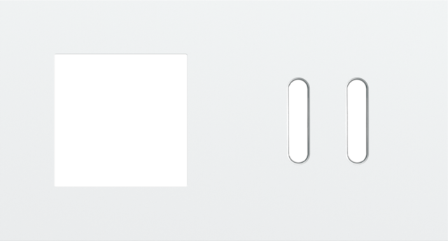 La plaque de recouvrement double Niko Rocker, horizontale, s'enclenche sur une fonction de 45 x 45 mm et une fonction de commutation doubl that have been horizontally installed next to each other with a centre distance of 71 mm. La plaque de recouvrement se combine avec tout set de finition Niko 45 x 45 mm et set Niko Rocker disponibles pour les fonctions de commutation double. Elle se compose d'un cadre supérieur, d'un guide lumineux et d'un cadre inférieur qui sont interconnectés mécaniquement. Le cadre supérieur est en acier. Le cadre inférieur est en polycarbonate (PC) blanc + acrylique-styrène-acrylate (ASA), white coated. L'épaisseur du cadre supérieur est de 2 mm, celle du cadre inférieur de 6 mm.