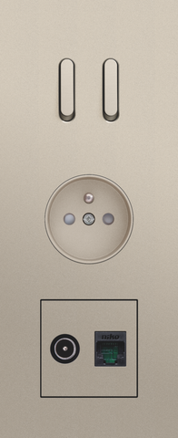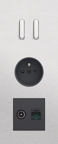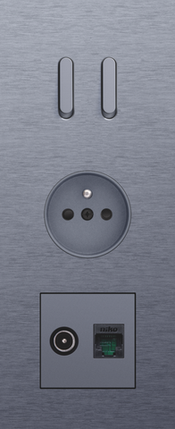 Set de finition pour prise de courant avec broche de terre et obturateurs de protection. Cette plaque centrale doit être utilisée avec une prise de courant d'une profondeur d'encastrement de 28,5 mm et une plaque de recouvrement de prise de courant Niko Rocker ou Niko Toggle. Le set de finition est doté d'une vis noire et d'obturateurs de protection noirs qui s'harmonisent avec le reste du set de finition. Couleur de finition: anthracite coated.