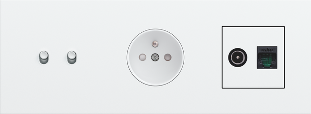 Niko recommande une combinaison de design avec un set de finition dans la couleur suivante : steel white coated pour les sets de finition Niko Rocker et Niko Toggle et white coated pour d'autres sets de finition.