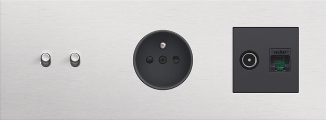 Set de finition pour prise de courant avec broche de terre et obturateurs de protection. Cette plaque centrale doit être utilisée avec une prise de courant d'une profondeur d'encastrement de 28,5 mm et une plaque de recouvrement de prise de courant Niko Rocker ou Niko Toggle. Le set de finition est doté d'une vis noire et d'obturateurs de protection noirs qui s'harmonisent avec le reste du set de finition. Couleur de finition: anthracite coated.