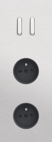 Set de finition pour prise de courant avec broche de terre et obturateurs de protection. Cette plaque centrale doit être utilisée avec une prise de courant d'une profondeur d'encastrement de 28,5 mm et une plaque de recouvrement de prise de courant Niko Rocker ou Niko Toggle. Le set de finition est doté d'une vis noire et d'obturateurs de protection noirs qui s'harmonisent avec le reste du set de finition. Couleur de finition: anthracite coated.