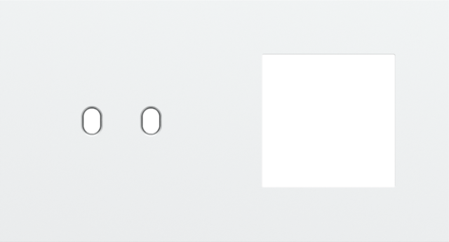 La plaque de recouvrement double Niko Toggle, horizontale, s'enclenche sur une fonction de commutation double et une fonction de 45 x 45 m that have been horizontally installed next to each other with a centre distance of 71 mm. La plaque de recouvrement se combine avec toute barre Niko Toggle disponible pour la fonction de commutation double et set de finition Niko 45 x 45 mm. Elle se compose d'un cadre supérieur, d'un guide lumineux et d'un cadre inférieur qui sont interconnectés mécaniquement. Le cadre supérieur est en acier. Le cadre inférieur est en polycarbonate (PC) blanc + acrylique-styrène-acrylate (ASA), white coated. L'épaisseur du cadre supérieur est de 2 mm, celle du cadre inférieur de 6 mm.