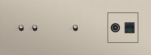 Un interrupteur double allumage peut être utilisé pour allumer et éteindre deux lampes distinctes. Un Niko Rocker ou un Niko Toggle et la plaque de recouvrement d’une couleur au choix doivent être commandés séparément.